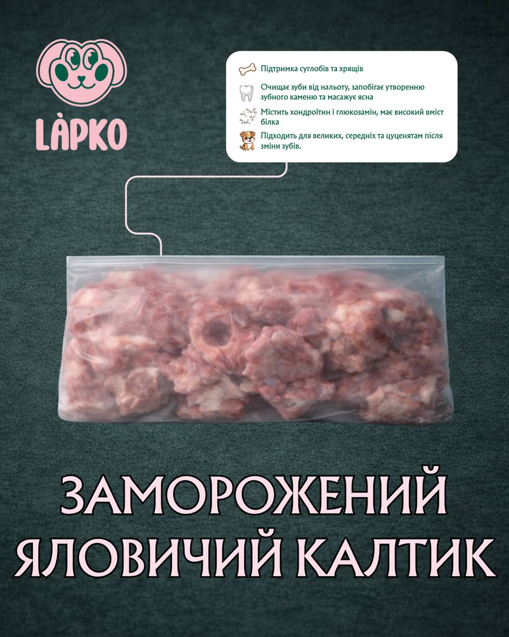 Калтик яловичий заморожений — натуральне джерело хондроїтину для вашого собаки