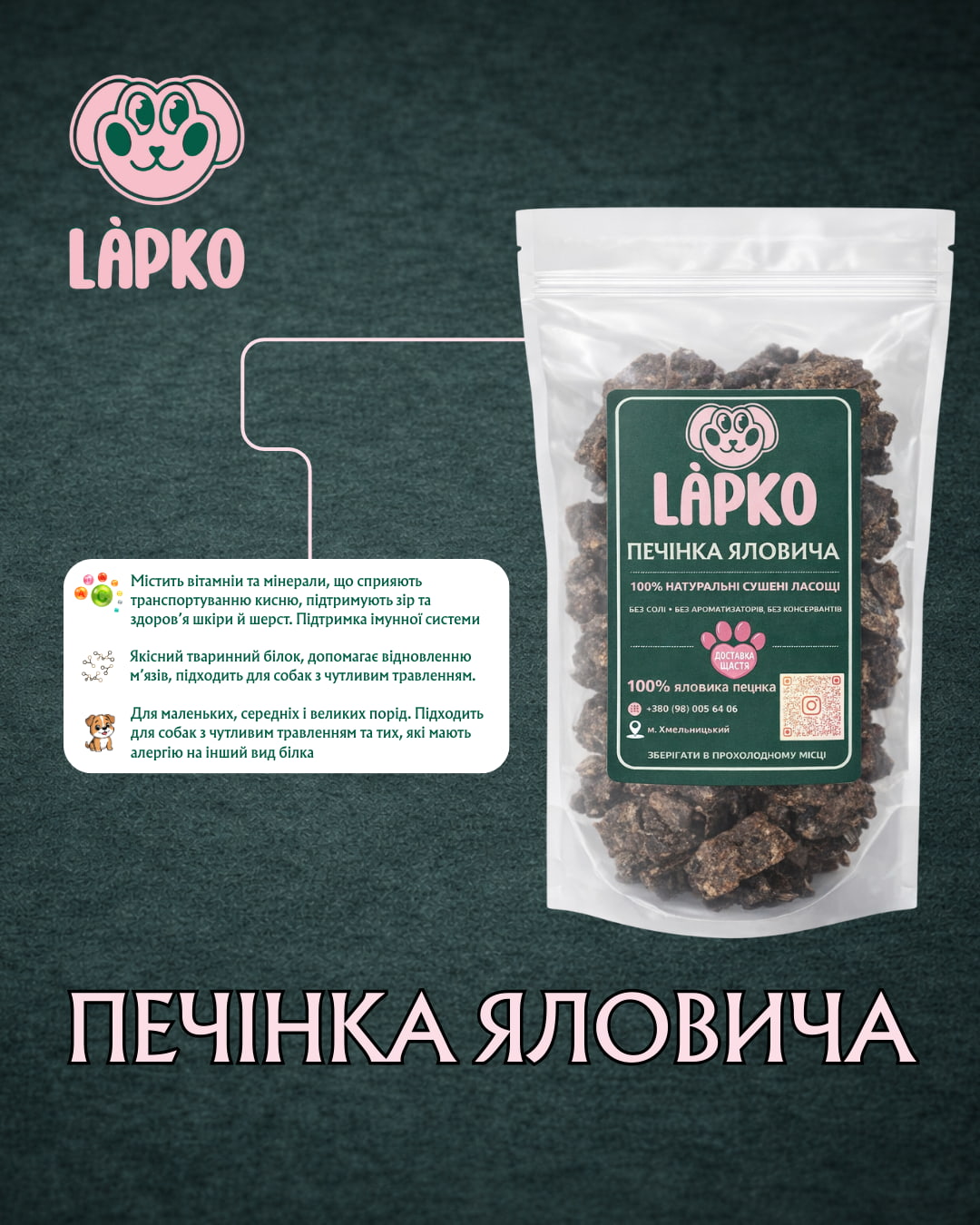 Склад: 100% яловича печінка. Оберіть безпеку та якість для свого чотирилапого друга!
